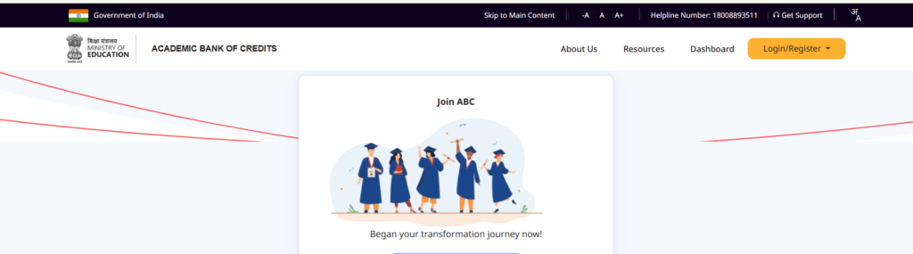 - सबसे पहले https://www.abc.gov.in/ पर जाएं। होमपेज खुलने के बाद My Account सेक्शन में Student ऑप्शन चुनें। अगर आप नए यूजर हैं तो Sign Up पर क्लिक करें।